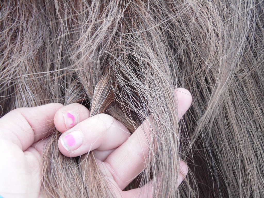 Stap 1 is het doorborstelen van de manen, maar daar heb ik geen foto van dus gaan we meteen door naar het vlechten, ik hoop nogmaals dat het te begrijpen is, als je het nog niet helemaal snapt kijk dan ook even onze video, de link van die video vind je onder dit artikel, succes! Ik had al een vlecht gemaakt, dus heb ik in een klein plukje haar de fotos geschoten, ik leg het gewoon normaal uit hoe je het moet doen met een 'grote' hengstenvlecht, geen zorgen dus.